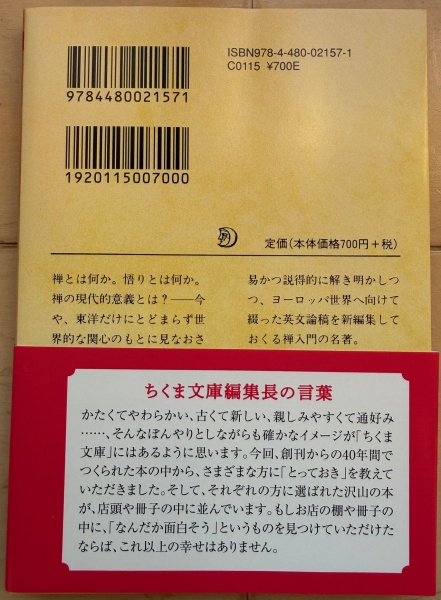 禅 鈴木大拙 訳:工藤澄子 700円(税別) 219ページ