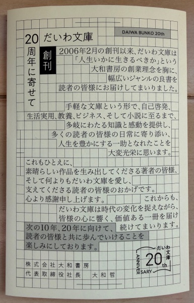 さて、2026年の2月に、だいわ文庫は創刊20周年を迎えるそうです。