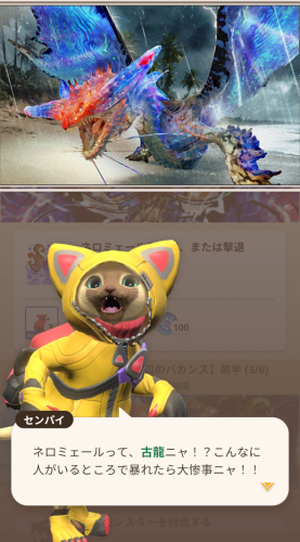 というわけで、なんですかネ、ネロミェール?という古龍と戦うようです。ワタクシは、このモンスターと戦うのは初めてです…。以前、海に潜れるモンハンがありましたが、その時に登場したのでしょうか…。
