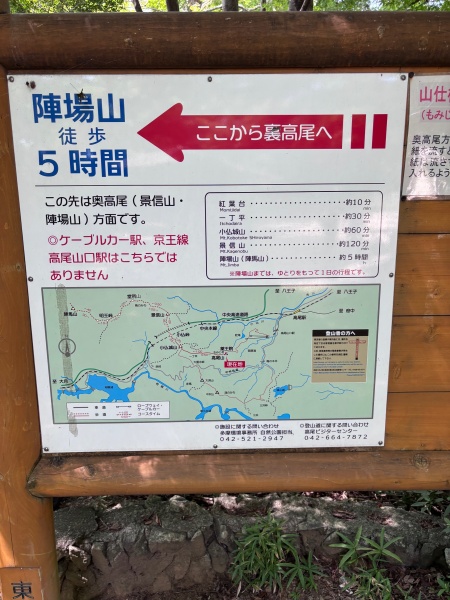 やはり、間違ってしまう人がいるんでしょうね~。しつこく看板があります。陣場山には5時間ですから…往復で10時間でしょう?1日で行けるの?って感じですよね~。遠いな~。