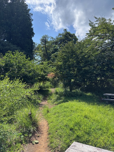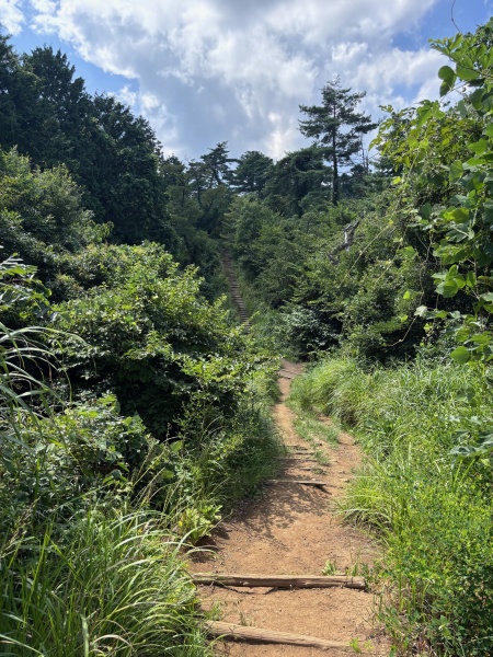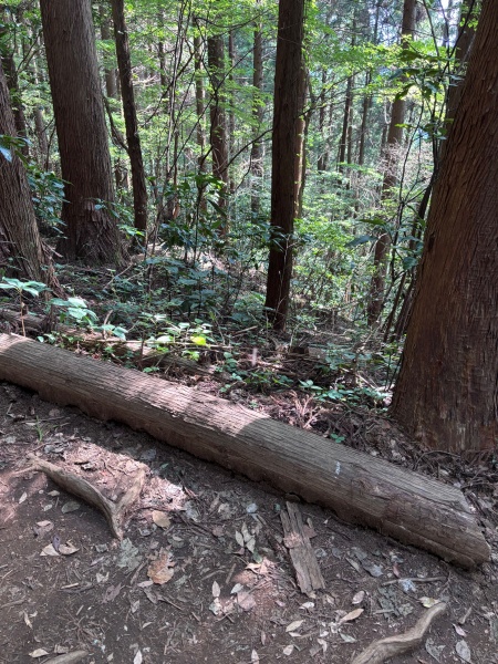 今回、普通の山道を行ったわけですが…ワタクシの履いていた靴は、ヒモじゃない…スポッと入るタイプの通勤靴というか運動靴というか…。なので、木の根っこのところや高めの段差だと、靴の中で足がすべっちゃうんですね…登りはなんとかなるんですが…下りが怖い感じです。